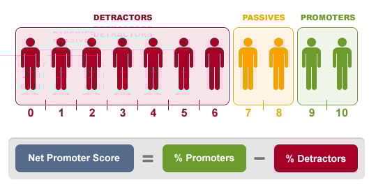 Detractors: -100 (Note: Passives are assigned a value of zero because this entire customer segment is ignored in the calculation).